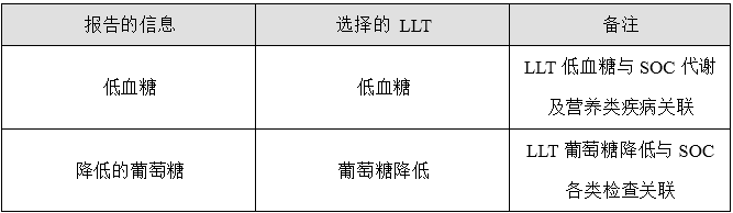如果報告了矛盾、有歧義或含糊的信息,可能很難選擇術語來支持適當的數據檢索。出現這種情況時,應盡力獲取更具體的信息。如果無法獲得澄清,可以選擇諸如LLT無法評估的事件或LLT未明確定義的疾病來代表含糊報告的信息。