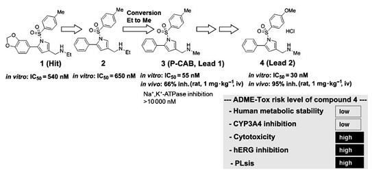 圖2 HTS hit compound 1和其它報道的P-CAB化學結構
