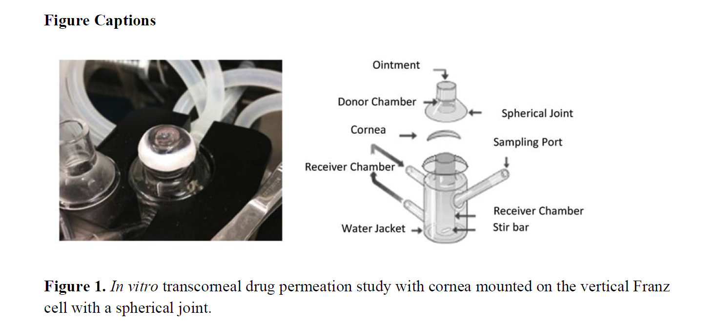 IVPT裝置上與常規垂直擴散池不同,應使用帶球形接頭的垂直 Franz 擴散池(詳見下圖),以迎合角膜的曲率弧度的要求。此外試驗中建議使用Parafilm覆蓋上藥后的供給池,以減少試驗過程中的統計蒸發。擴散池恒溫控制在 37.0±0.5°C。