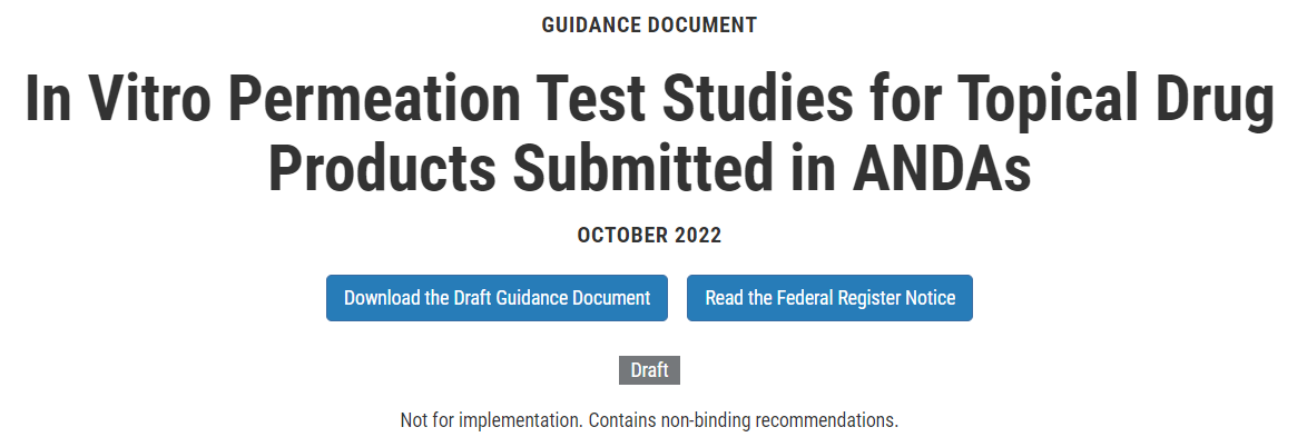 FDA在2022年10月21日發布了外用制劑仿制藥IVPT技術指南草案《In Vitro Permeation Test Studies for Topical Drug Products Submitted in ANDAs》