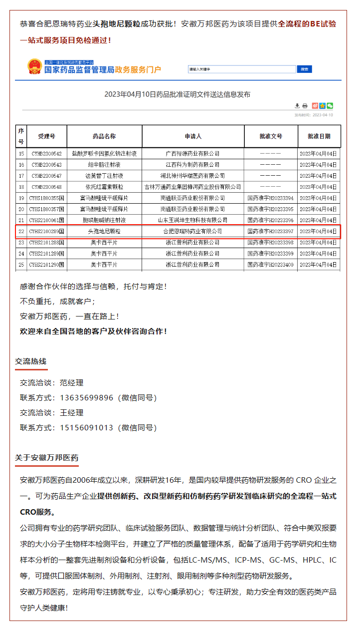 喜報|安徽萬邦醫(yī)藥助力合肥恩瑞特藥業(yè)頭孢地尼顆粒成功獲批!